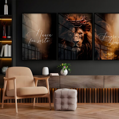 R$ 389,90 – R$ 3.899,90Price range: R$ 389,90 through R$ 3.899,90 Em até 10x de R$ 38,99 sem jurosQuadro Decorativo Leão Nunca Foi Sorte Sempre foi Deus